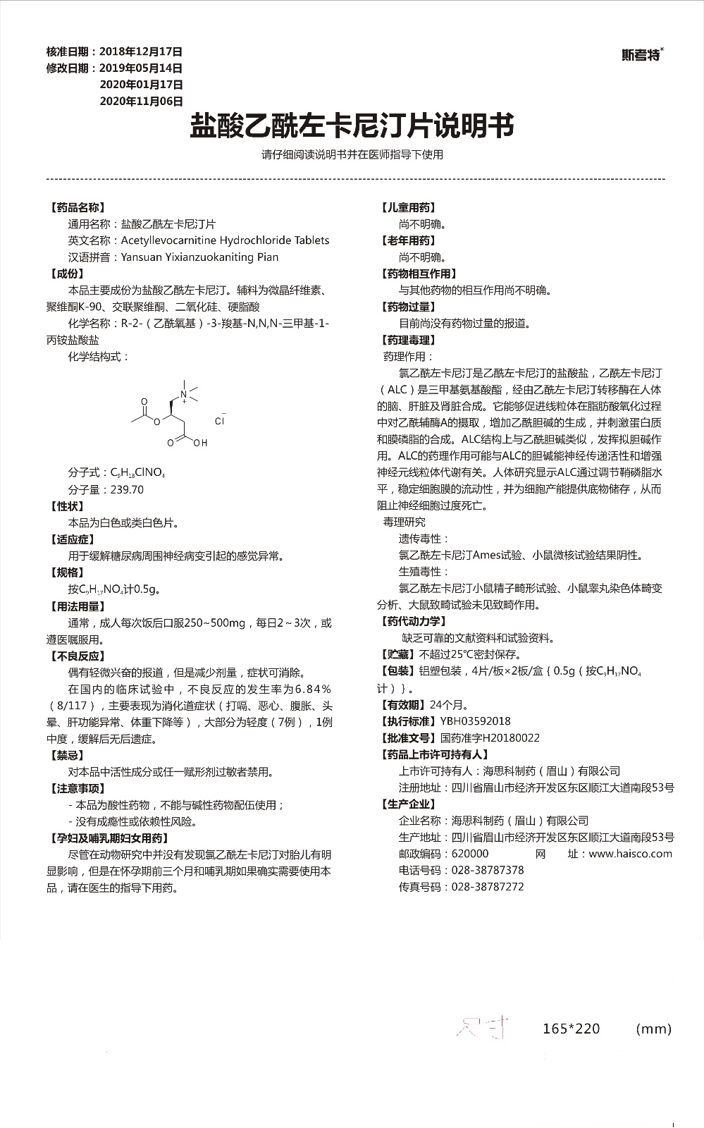 【通用名】鹽酸乙酰左卡尼汀片